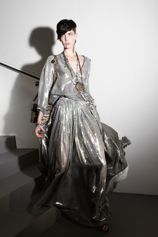 The Look: Metallic dresses, Turbans, drapery, mixed patterns, feathers, Uni-Shoulder, CHILDREN clothing